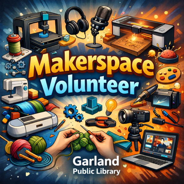 Garland Public Library is seeking skilled and community-minded adults to serve as Makerspace Volunteers. If you enjoy working with creative tools and technology — and love helping others learn — this is a meaningful way to give back.